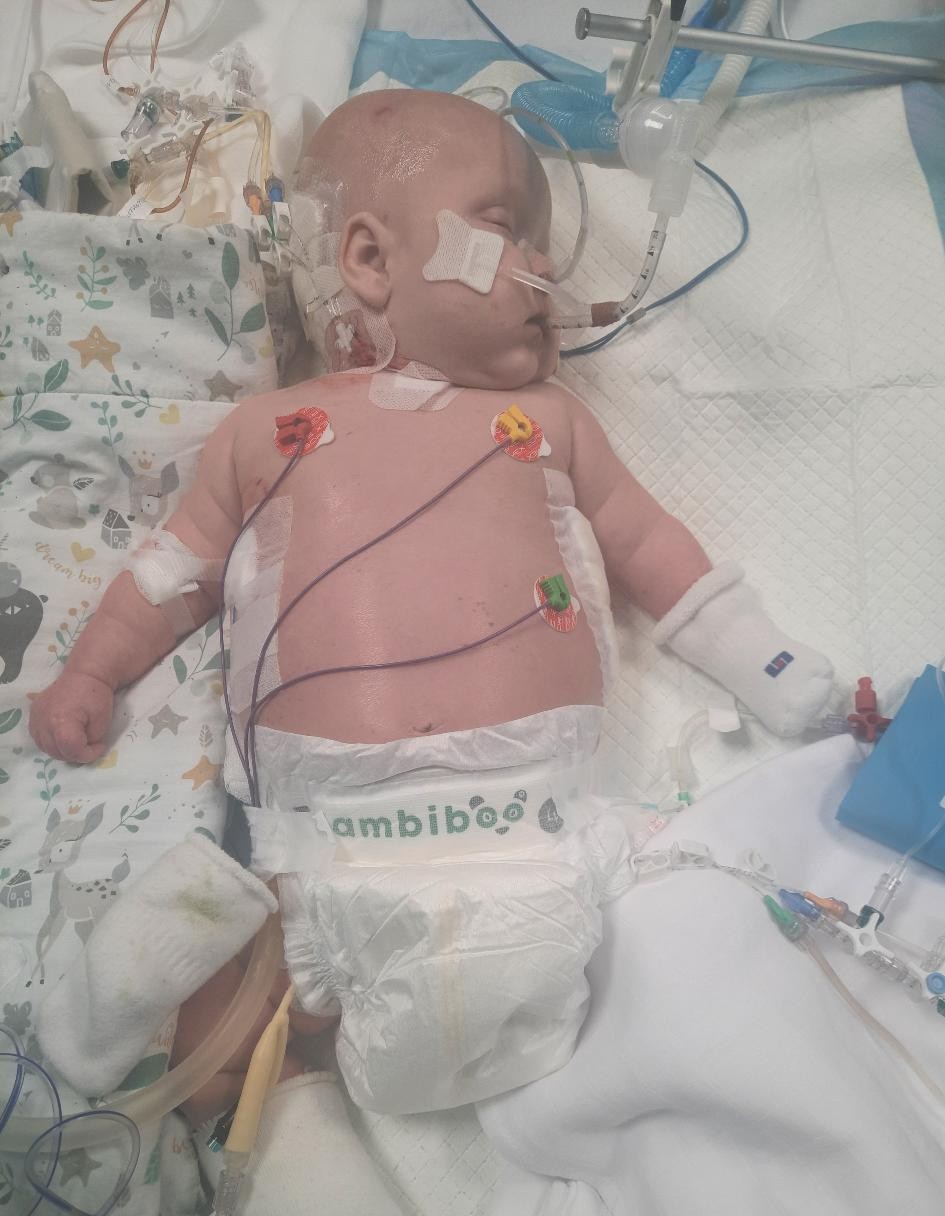 Cześć wszystkim. Mam na imię Nikodem. Urodziłem się 19.05.2025 r. w 35 tygodniu ciąży, w Koszalinie, poprzez cesarskie cięcie. Moja mama leżała większość ciąży w szpitalu ze względu na ogromne wielowodzie i makrosomie płodu. Bardzo szybko rosłem w brzuszku u mamy i nikt nie wiedział co się ze mną dzieje. Po porodzie leżałem w inkubatorze, potrzebowałem wsparcia oddechowego. Miałem złe wyniki, silną żółtaczkę.