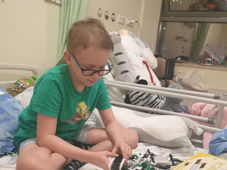 Choroba syna uniemożliwia mi jako mamie powrót do pracy. Przemek ma 13 lat i jest wesołym, wrażliwym chłopcem, który kocha klocki Lego i marzy o tym, by w przyszłości zostać elektro-inżynierem. Niestety w maju 2023r. nasz świat się na chwilę zatrzymał. Początki były trudne, a każdy dzień był dla nas wyzwaniem. Ból, strach, lęk o życie dziecka i morze łez. Rozpoczęło się leczenie sterydami, chemioterapią dożylną i dolędźwiową. Założono również synkowi dożylny centralny cewnik Hickmana, który jest wprowadzony do żyły docentralnej na klatce piersiowej. Protokoły HR ( zwiększonego ryzyka) zniósł niezwykle dzielnie. Synek przechodził bardzo trudne i ciężkie leczenie chemioterapią, które nie obyło się bez powikłań. Synek najbardziej szczęśliwy był kiedy mógł zobaczyć swoją siostrzyczkę chociaż przez chwilę przez szybę szpitalnych drzwi…